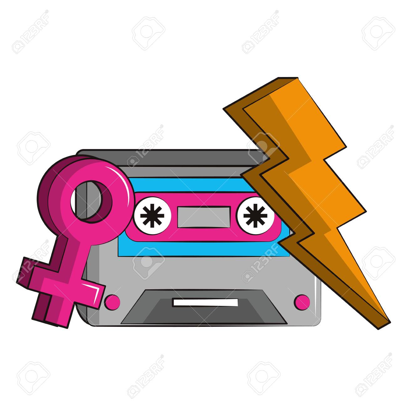 Pop Art Classic Music Image. Colorful set of comic icon in pop art style. Megaphone, lips, star, bomb, alarm clock, lightning.